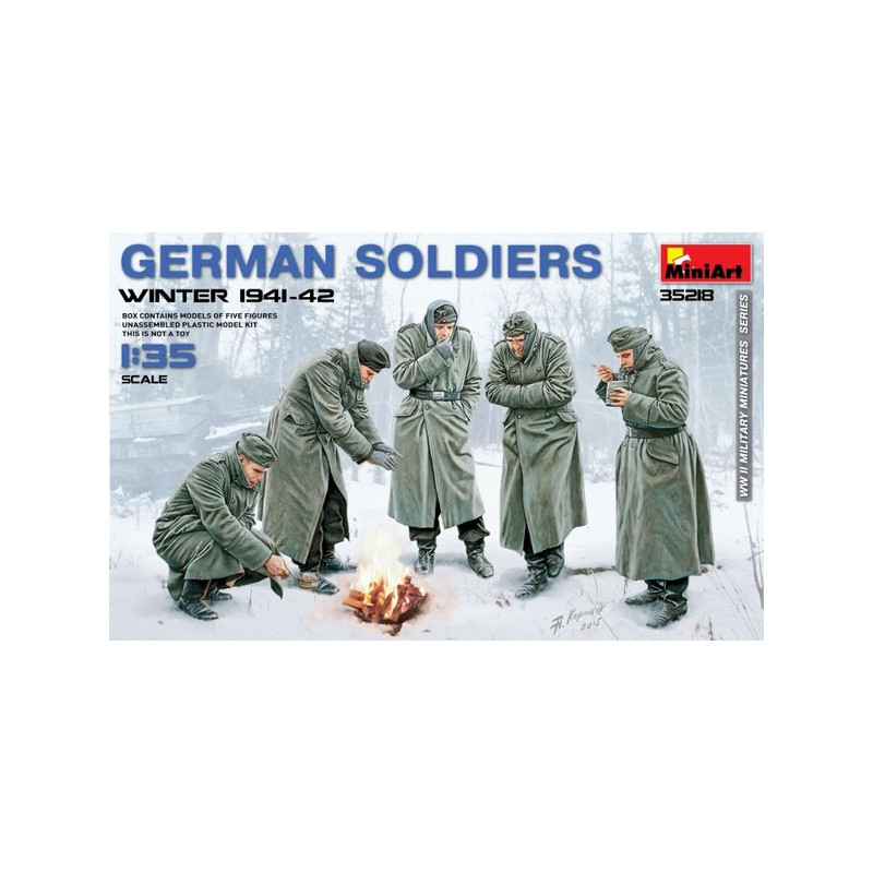 Cette boite maquette militaire Miniart au 1/35 propose cinq figurines de soldats allemands pendant l'hiver 41-42. Elle permet d'agrémenter vos dioramas, réf : 35218