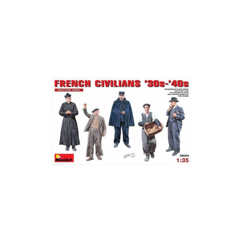 Cette boite maquette militaire Miniart au 1/35 propose 5 figurines de civils français des années 30 - 40. Elle vous permettra de présenter vos modèles, réf : 38004