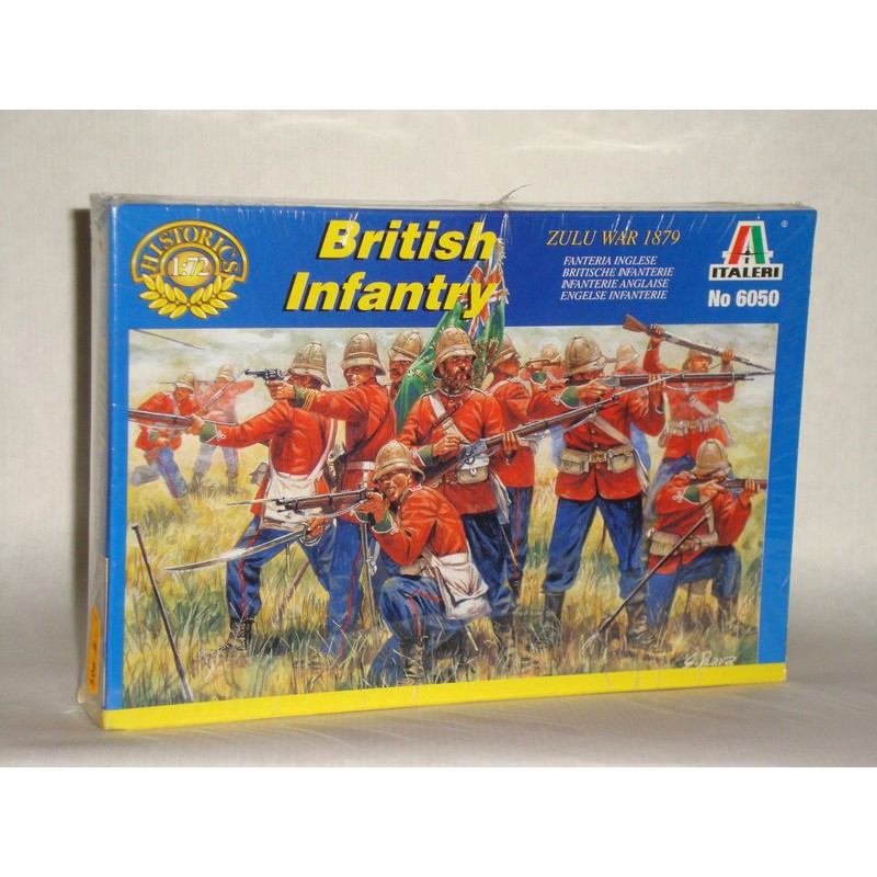 Cette boite Italeri au 1/72 contient des soldats d'infanterie anglais de la guerre avec l'empire Zoulou (40 pièces), réf: 6050