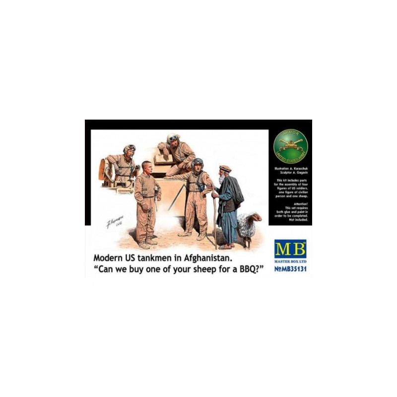 Cette boite maquette militaire MB au 1/35 propose quatre figurines de soldats américains modernes et une figurine de civil afghan ainsi qu'un mouton, réf : 35131