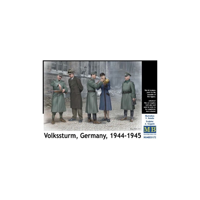 Cette boite maquette militaire MB au 1/35 propose cinq figurines de la Volkssturm à la fin de la Seconde Guerre mondiale, réf : 35172