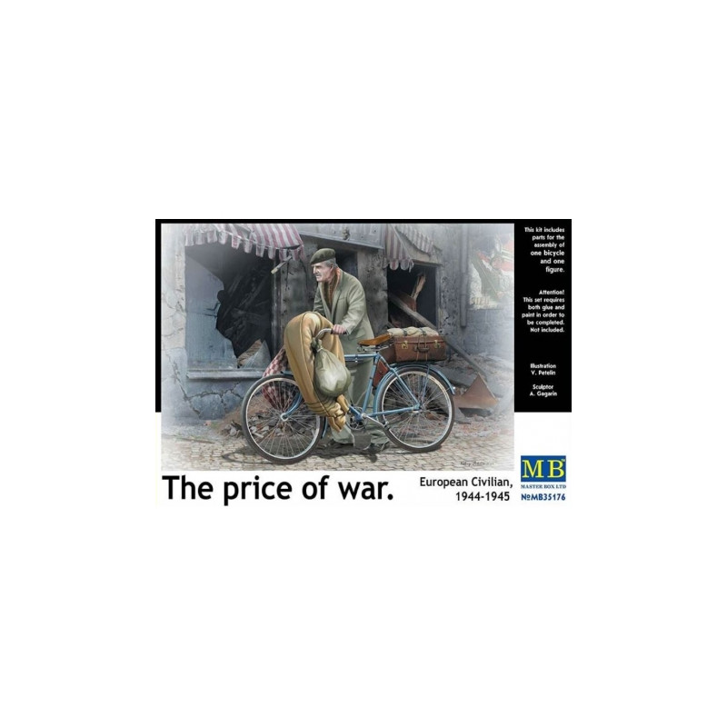 Cette boite maquette militaire MB au 1/35 propose une figurine de civil européen avec sa bicyclette à la fin de la Seconde Guerre mondiale, réf : 35176