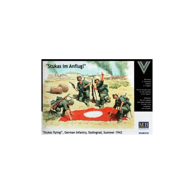 Cette boite maquette militaire MB au 1/35 propose quatre figurines d'infanterie allemande à Stalingrad au cours de l'été 1942, réf : 3545