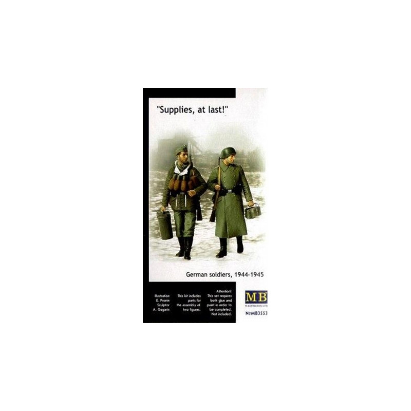 Cette boite maquette militaire MB au 1/35 propose deux figurines de soldats allemands au ravitaillement, réf : 3553
