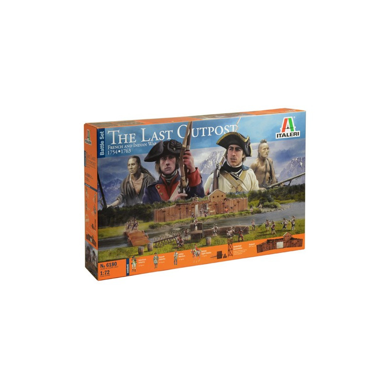 Cette boite Italeri au 1/72 contient tout le nécessaire pour représenter un poste avancé lors de la guerre de la Conquête qui a eu lieu sur le continent Nord Américain de 1754 à 1763.