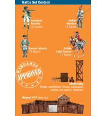 Elle propose une reproduction de barricades, un set d'accessoires divers, 16 figurines indiennes, 32 figurines d'infanterie américaine, 49 figurines d'infanterie française et 17 cavaliers britanniques, réf: 6180