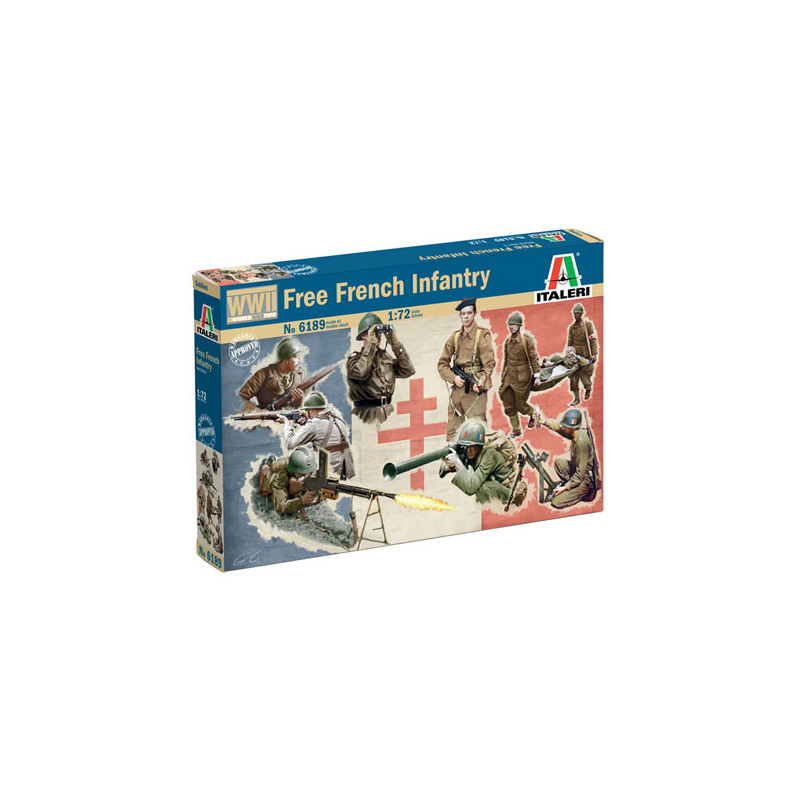 Cette boite Italeri au 1/72 contient divers membres des Forces Françaises Libres qui ont combattu pendant la Seconde Guerre mondiale (49 pièces), réf: 6189