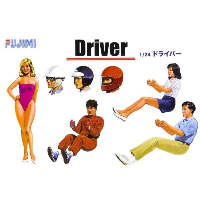 Cette boite maquette voiture Fujimi au 1/24 contient trois figurines de pilotes et une figurine de pin-up ainsi que trois têtes avec casque qui vous permettront de personnaliser vos réalisations, réf: 11491