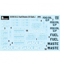 Cette boite maquette militaire Miniart au 1/35 propose 12 bidons de fuel US de 55 gallons (soit environ 200 litres). Idéale pour d'agrémenter vos dioramas, réf : 35592