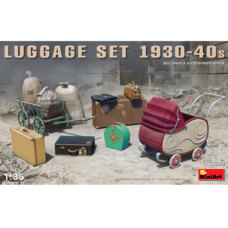 Cette boite maquette militaire Miniart au 1/35 propose un set de bagages et poussette des années 30 - 40. Idéale pour d'agrémenter vos dioramas, réf : 35582