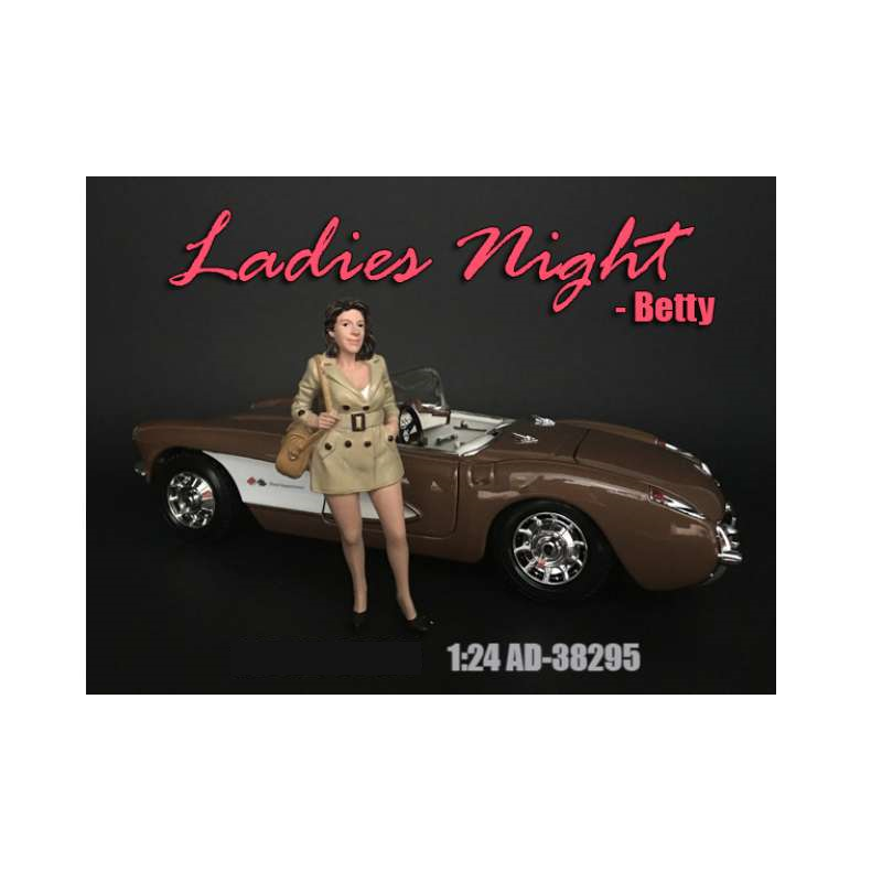 Cette maquette American Diorama propose une figurine déjà peinte représentant une femme "Betty" au 1/24 (la voiture n'est pas incluse dans le kit), réf : 38295
