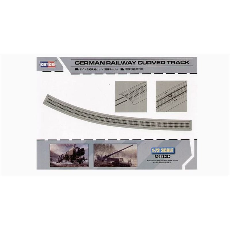 Cette boite diorama Hobby Boss au 1/72 propose un ensemble de rails courbes de chemin de fer pour modèles à l’arrêt d’écartement de 22,5 mm permettant d'agrémenter vos seynettes, réf: 82910