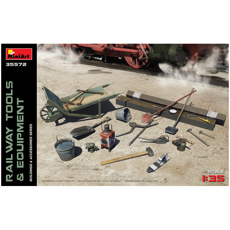 Cette boite maquette militaire Miniart au 1/35 propose outillage et équipement pour les ouvriers de chemin de fer pour agrémenter vos dioramas, réf : 35572