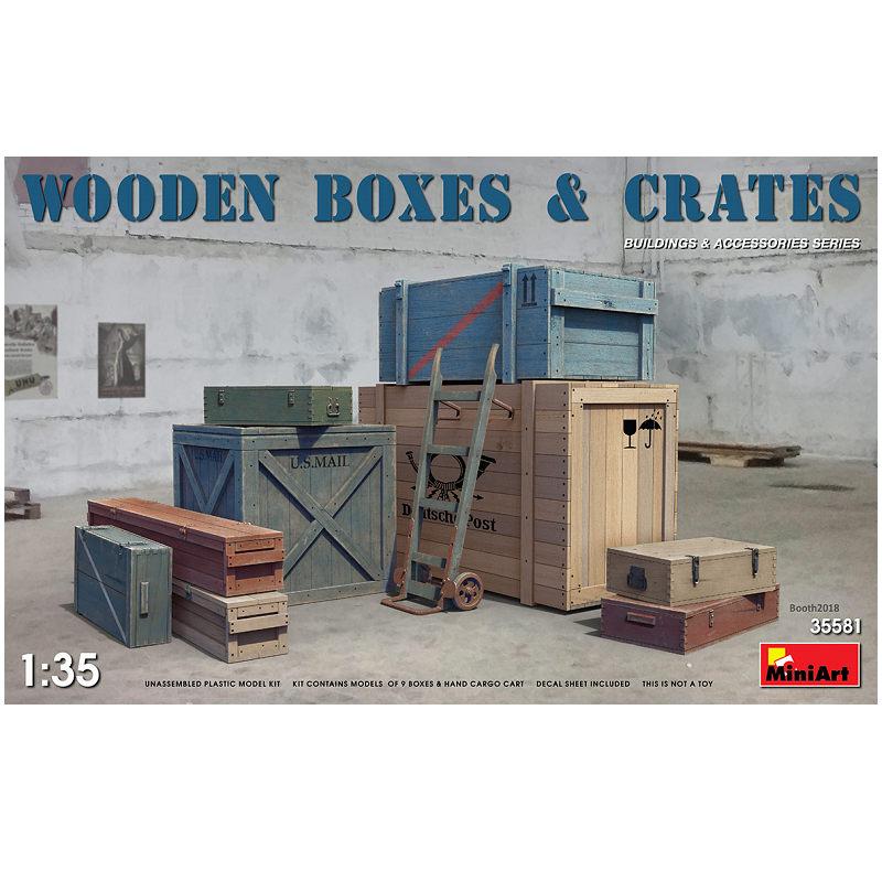 Cette boite maquette militaire Miniart au 1/35 propose des caisses en bois de tailles diverses permettant d'agrémenter vos dioramas, réf : 35581