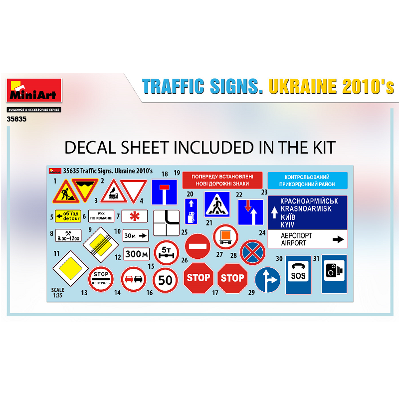 Cette boite maquette militaire Miniart au 1/35 propose de nombreux panneaux indicateurs ukrainiens des années 2010. Elle permet d'agrémenter vos dioramas, réf : 35635