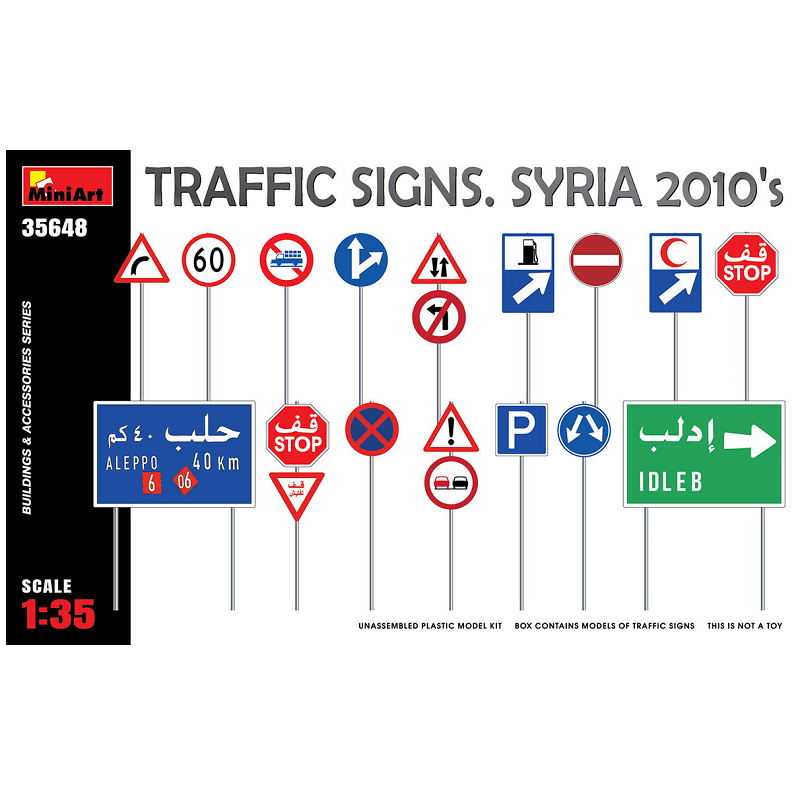 Cette boite maquette militaire Miniart au 1/35 propose de nombreux panneaux indicateurs syriens des années 2010. Elle permet d'agrémenter vos dioramas, réf : 35648