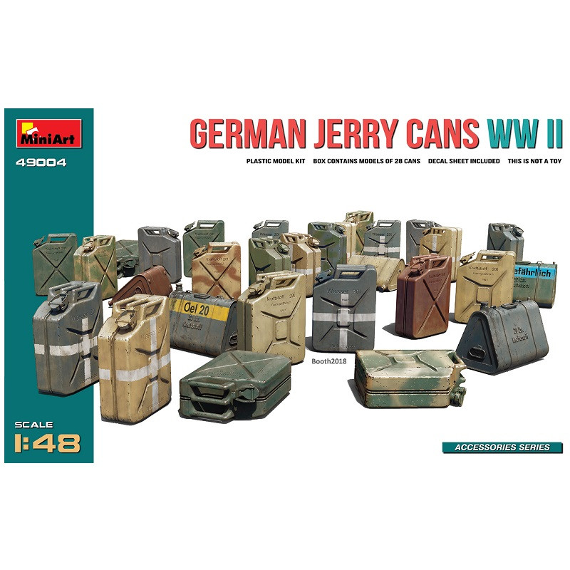Cette boite maquette militaire Miniart au 1/48 propose 28 Jerrycans allemands de différents modèles de la Seconde Guerre mondiale. Elle vous permettra d'agrémenter vos modèles, réf : 49004