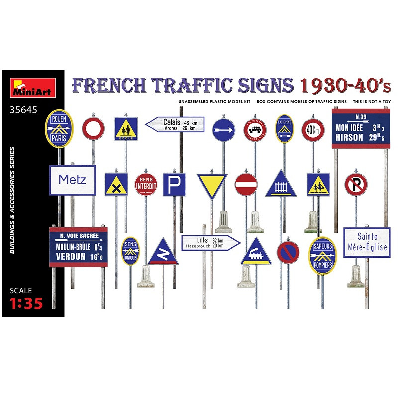Cette boite maquette militaire Miniart au 1/35 propose de nombreux panneaux indicateurs français des années 30-40. Elle permet d'agrémenter vos dioramas, réf : 35645