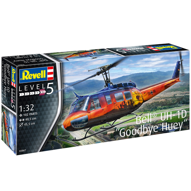 Le Bell UH-1 Iroquois, ou "Huey", est devenu célébre par son utilisation par l'armée américaine pendant les opérations de la Guerre du Vietnam dans les années 60. La maquette Revell au 1/32 permet la réalisation de la version D, réf: 03867