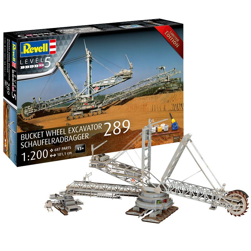 La Bagger 289 est une excavatrice à roue-pelle allemande utilisée dans la mine à ciel ouvert de Hambach et assurant l'extraction du lignite en déblayant la couverture de terre au-dessus des veines de lignite. Vue son ampleur (200 mètres de long, 80 mètres de haut et 13.000 tonnes), elle a été construite sur place de 1974 à 1977 pour une durée de vie estimée à au moins 40 ans. La maquette Revell au 1/200 est une ré-édition limitée permettant de reproduire cet engin exceptionnel. Il s'agit d'un coffret cadeau contenant colle, peintures et pinceau, réf: 05685