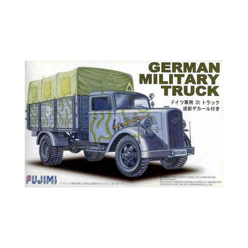 Cette maquette militaire Fujimi 1/72 propose une reproduction d'un camion allemand bâché utilisé pour le transport de marchandises ou de troupe, réf: 72227