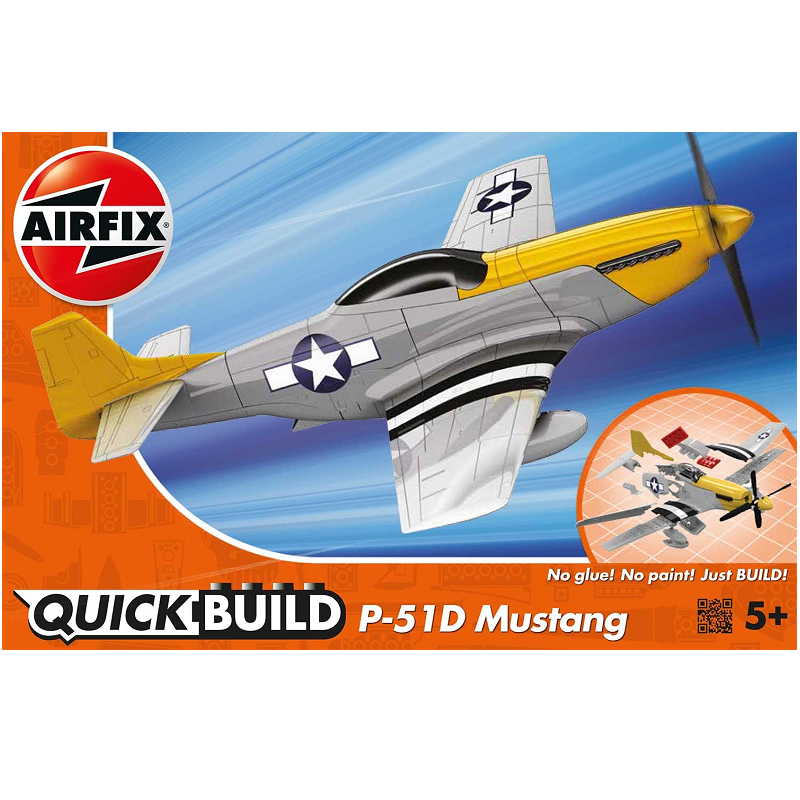 Cette maquette militaire Airfix représente un avion P-51D Mustang. Il s'agit d'une maquette Quick Build sans colle ni peinture pour initier les débutants à partir de 5 ans, réf: J6016