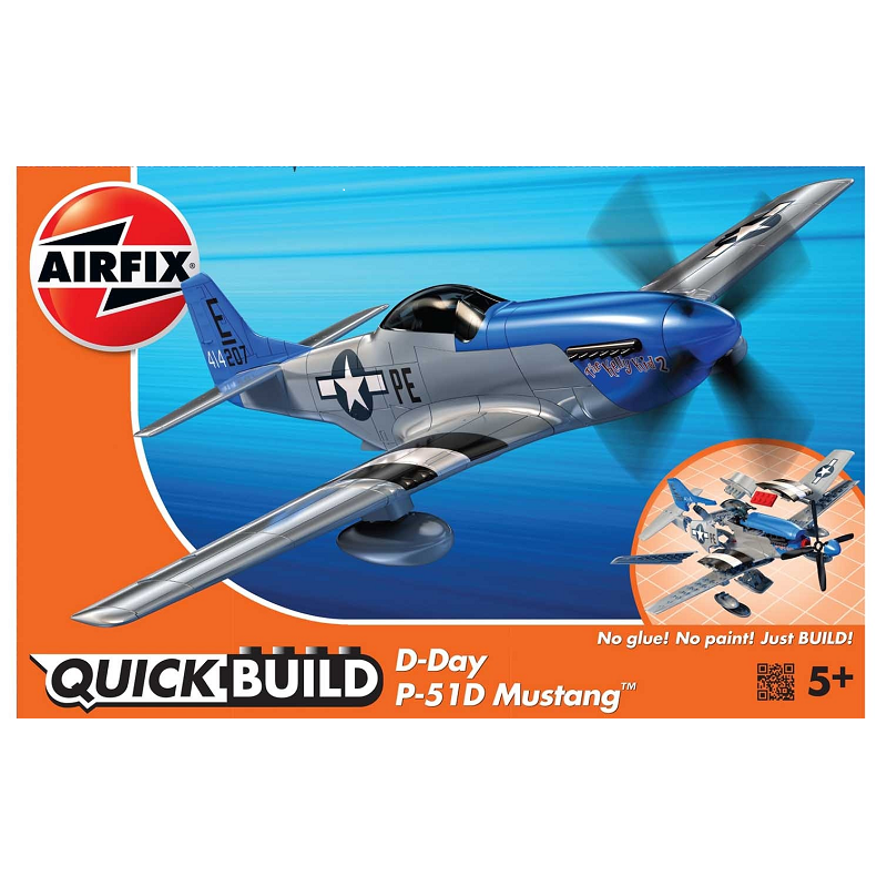 Cette maquette avion Airfix représente un avion P-51D Mustang aux couleurs du D-Day. Il s'agit d'une maquette Quick Build sans colle ni peinture pour initier les débutants à partir de 5 ans, réf: J6046