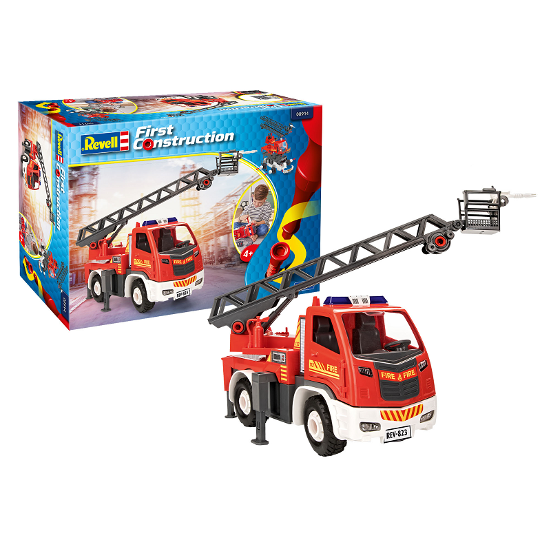 Cette maquette Revell représente un camion de pompiers grande échelle. Il s'agit d'une maquette "First Construction" pour initier les débutants à partir de 4 ans. Elle est composée de 74 grosses pièces robustes à assembler à l'aide de vis et d'un tournevis fournis dans la boite et elle est éclairée et sonorisée, réf : 00914
