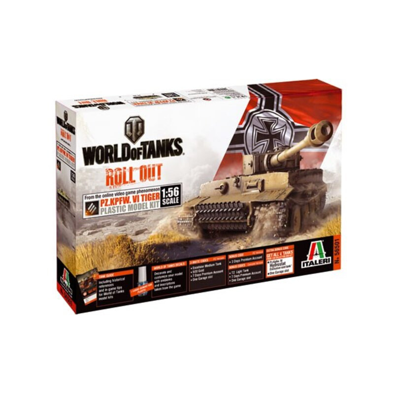 Le Panzerkampfwagen VI, surnommé Tiger, est un char lourd développé par l’Allemagne nazie, dans les forces de laquelle il est en service de 1942 à 1945. Italeri s’est associé à "wargaming.net", l’éditeur de "World of Tanks" pour proposer aux joueurs des répliques au 1/56 des blindés apparaissant dans le jeu. La maquette militaire Italeri au 1/56 propose ce modèle, réf: 56501