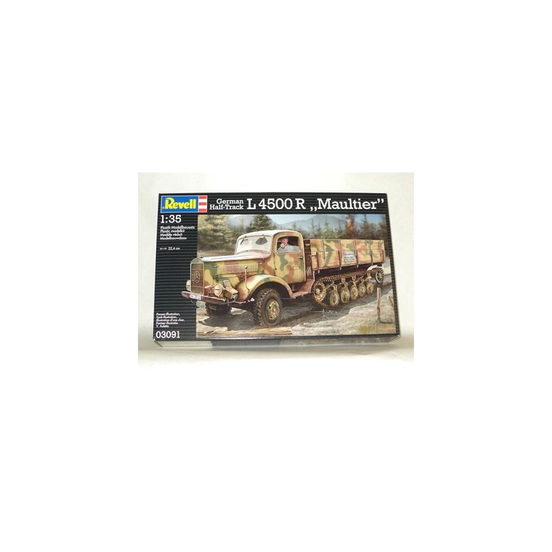 Le L4500R "Maultier" est une évolution du camion 4x4 L4500A sur lequel le train arrière a été remplacé par le train de chenilles du Pz.Kpfw II. Il a été produit par Daimler-Benz dès 1943, pour permettre aux troupes allemandes de faire face aux particularités climatiques et aux conditions de terrain lors de l'invasion en URSS. La maquette Revell au 1/35 propose des chenilles en fonte injectée et contient deux figurines (conducteur et mécanicien), réf: 03091