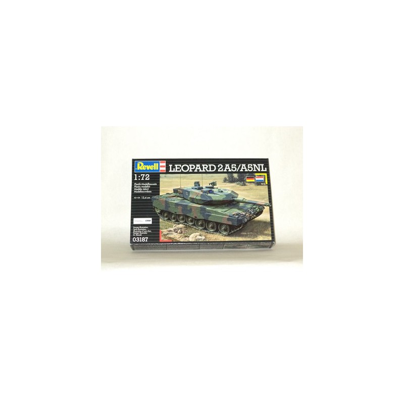 Le Léopard 2A5, mis en service en 1985, bénéficie, en plus de nombreuses améliorations mineures, d'un blindage renforcé pour la protection de l'équipage et de meilleurs équipements pour les combats de nuit. La maquette Revell au 1/72 permet de réaliser la version A5 allemande ou la version A5NL des Pays-Bas, réf: 03187