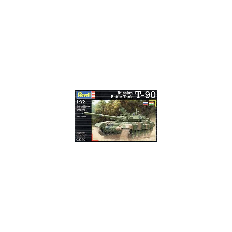Le T-90 « Vladimir » est le dernier char russe entré en production depuis 1994. Il combine le châssis du T-72 et l'électronique de bord du T-80 avec des systèmes défensifs élaborés tels que le blindage réactif Kontakt-5 et le brouilleur anti-missile Shtora-1. La maquette militaire Revell au 1/72 reproduit fidèlement la mitrailleuse 12,7mm et permet de monter les écoutilles ouvertes ou fermées, réf: 03190