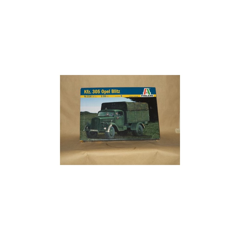 L'Opel Blitz est un camions léger et rapide produit par la firme allemande Opel AG produit des années 1930 jusqu'aux années 1970 et notamment utilisé par la Wehrmacht pendant la Seconde Guerre mondiale. La maquette militaire Italeri au 1/35 contient également 2 figurines, réf: 216
