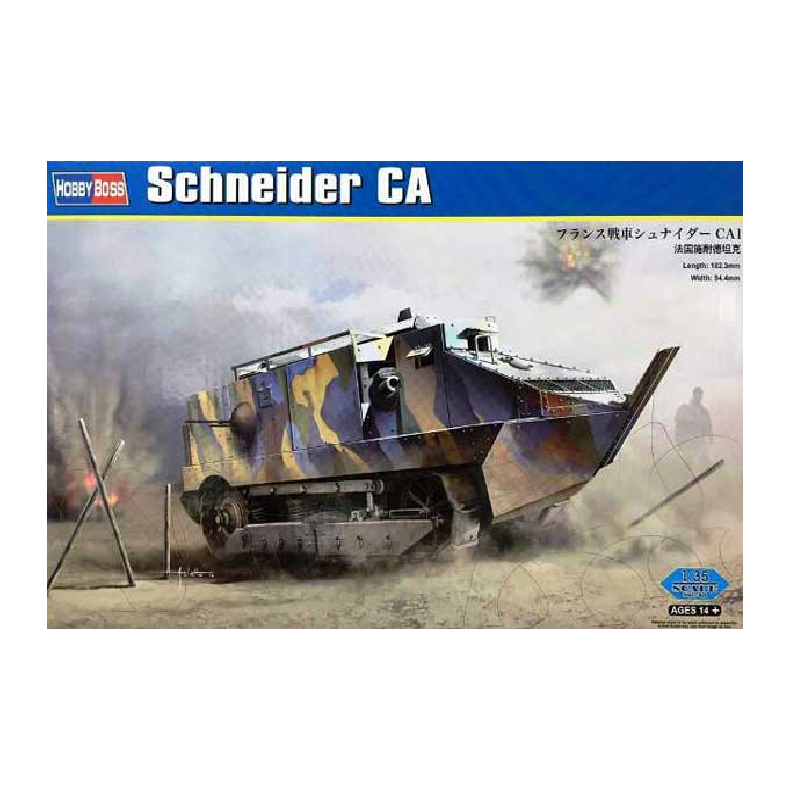 Le Schneider CA 1 (à l'origine appelé le Schneider CA) fut le premier char français. L'objectif de sa production est de sortir de l'impasse de la guerre de tranchées qui sur le front occidental a prévalu pendant la majeure partie de la Grande Guerre. La maquette militaire Hobby Boss au 1/35 se compose de plus de 380 pièces à assembler avec de nombreux détails, des chenilles individuelles à assembler, des pièces en photo découpe, réf: 83861