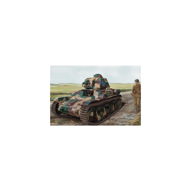Le Renault R 35 est un char d'assaut français de la Seconde Guerre mondiale. Son armement peu puissant et son équipage insuffisant conduisirent les R-35 Renault, utilisés dans des tactiques inefficaces, à subir de sérieux revers et de nombreuses pertes lors de la bataille de France en mai-juin 1940. La maquette militaire Hobby Boss au 1/35 est très détaillée, elle se compose de plus de 400 pièces dont de la photodécoupe, réf: 83806