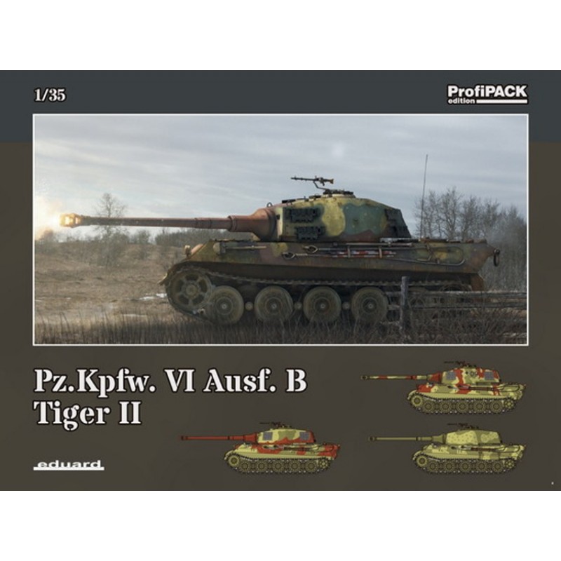 Le Panzerkampfwagen VI Königstiger, ou Sd.Kfz. 182 Panzer VI ausf B Tiger II, surnommé le Königstiger (Tigre royal), est un char d'assaut allemand de la Seconde Guerre mondiale. La maquette militaire Eduard au 1/35 est une version Profipack contenant notamment des pièces en photo-découpe et les décalques pour 3 versions, réf: 03715