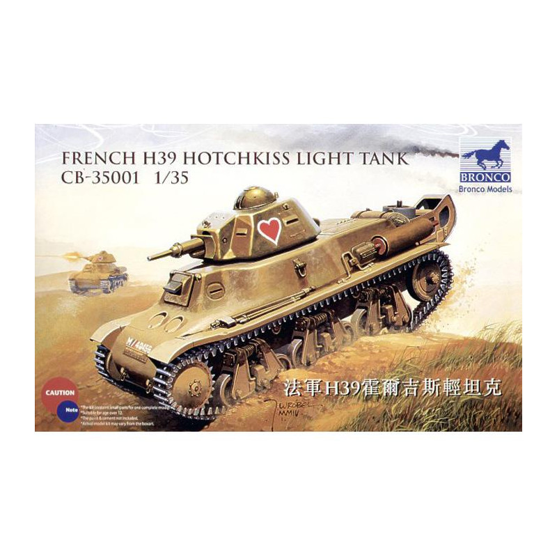 Le Hotchkiss H39 est dérivé du H35 et équipé d'un moteur plus puissant (120cv au lieu de 75) ce qui lui donne une nouvelle silhouette. Ce char a servi dans l'armée française pendant la Seconde Guerre Mondiale. La maquette militaire Bronco au 1/35 contient quelques pièces en métal, réf : 35001