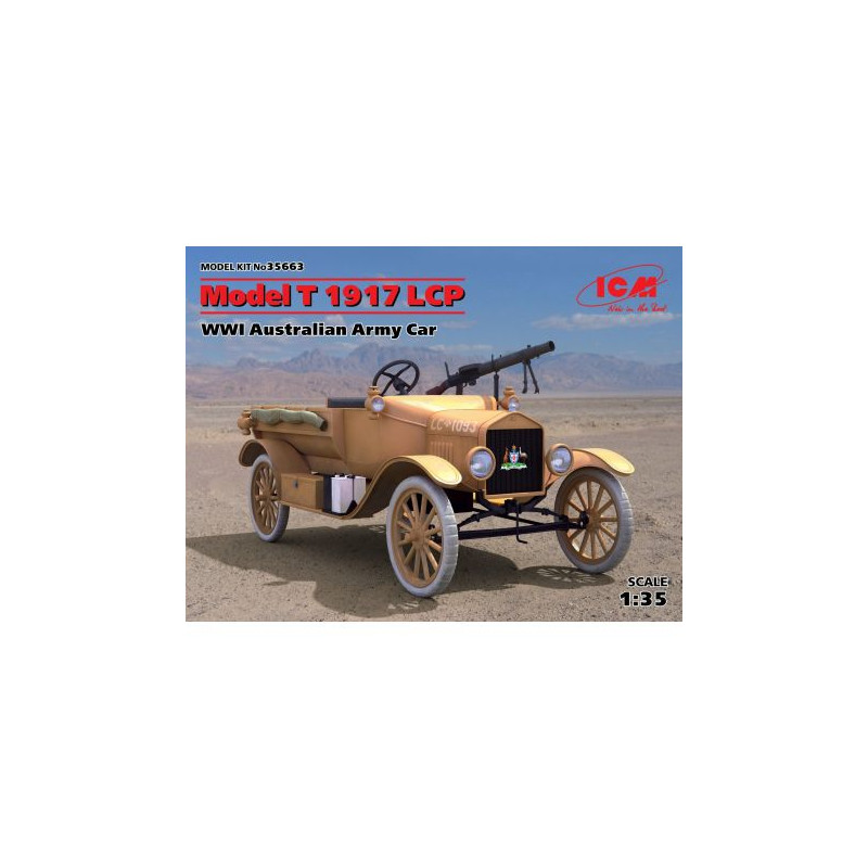 La Ford T a servi de support à tout type de véhicules militaires au cours de la Première Guerre Mondiale. La maquette militaire ICM au 1/35 propose une version australienne équipée d'armement lourd de 1917, réf: 35663