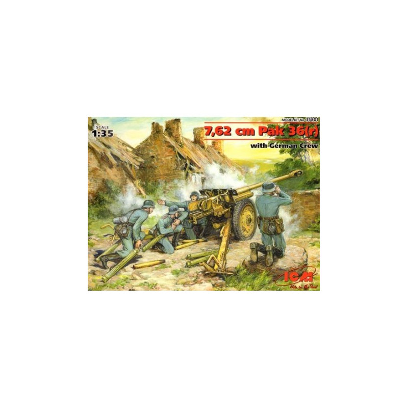 Le Pak 36 est un canon anti-char allemand utilisé au cours de la Seconde Guerre Mondiale. La maquette militaire ICM au 1/35 propose une version accompagnée de son équipage (quatre figurines), réf: 35801