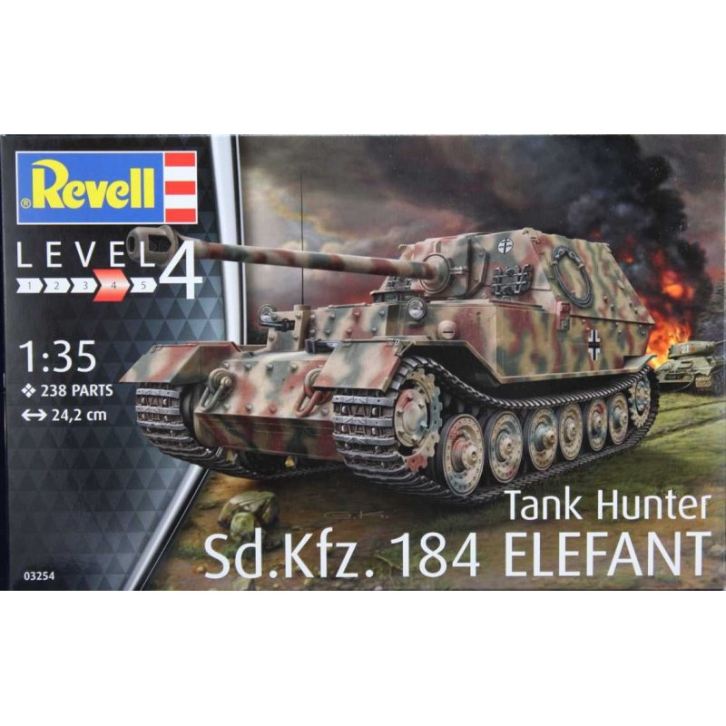 Le Jagdpanzer Elefant est un Schwerer Panzerjäger (chasseur de chars lourd en allemand) utilisé par l'Armée allemande durant la Seconde Guerre Mondial La maquette militaire Revell au 1/35 propose ce modèle, réf: 03254