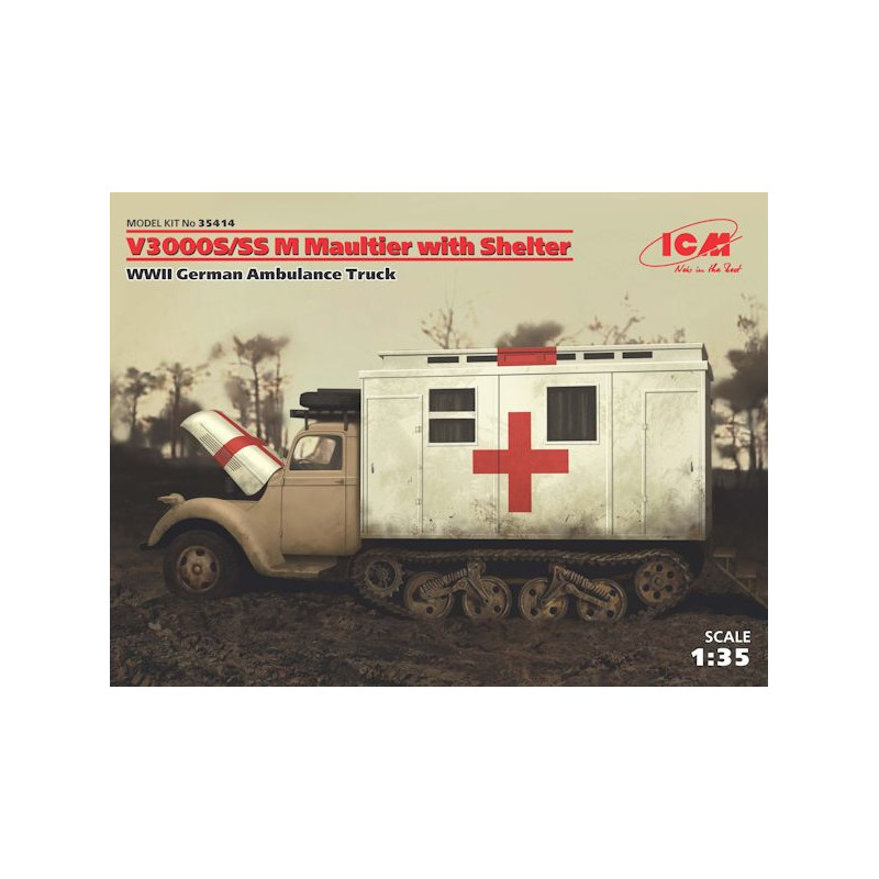 Le Ford Maultier est la conversion d’un camion Ford V3000 où l’essieu arrière est remplacé par des arbres de transmission du Panzer I. La maquette militaire ICM au 1/35 propose une version équipée d'une caisse modifiée en ambulance, réf: 35414