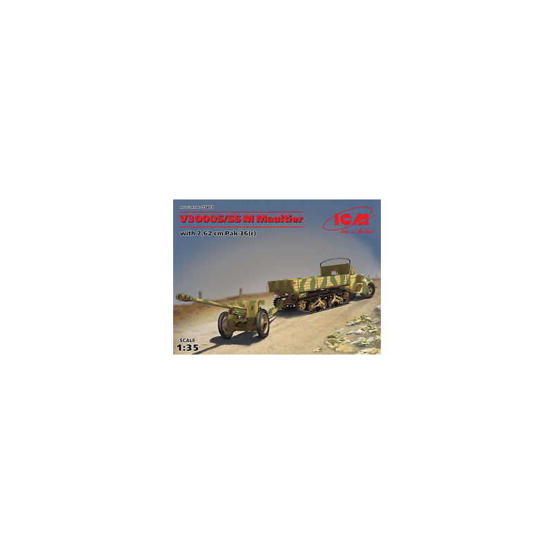 Le Ford Maultier est la conversion d’un camion Ford V3000 où l’essieu arrière est remplacé par des arbres de transmission du Panzer I. La maquette militaire ICM au 1/35 propose une reproduction fidèle de ce modèle accompagnée d'un canon Pk 36, réf: 35803