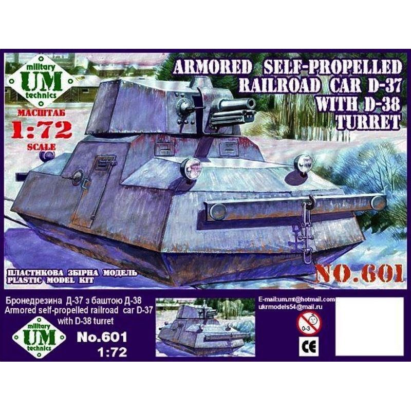 Cette maquette militaire UM Technics au 1/72 propose une reproduction de draisine blindée soviétique D-37, réf: 601