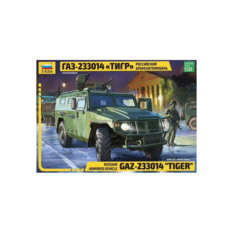 Le GAZ 2330 TIGR est un véhicule militaire blindé léger conçu et fabriqué par le constructeur russe GAZ. La maquette militaire Zvezda au 1/35 propose une reproduction de ce modèle, réf : 3668