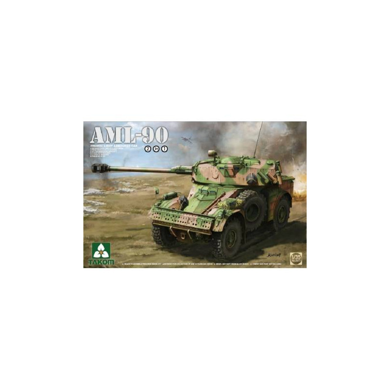 La Panhard AML est une automitrailleuse légère (AML) fabriquée par la firme Panhard qui a équipé l’armée de Terre française au cours des années 1960. La France les a remplacées mais de nombreux pays africains en possèdent encore. La maquette militaire Takom au 1/35 propose une reproduction du modèle AML-90 équipé d'un canon, réf: 2077