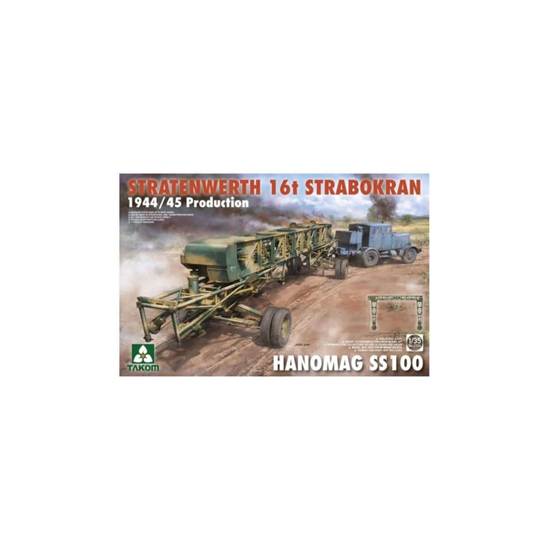 Le Stratenwerth 16T est une grue de levage démontable et mobile utilisée par l'armée allemande au cours de la Seconde Guerre mondiale pour assurer la maintenance des chars sur le terrain. La maquette militaire Takom au 1/35 propose cette grue accompagnée d'un camion Hanomag SS100 qui permet de la tracter une fois repliée, réf : 2124