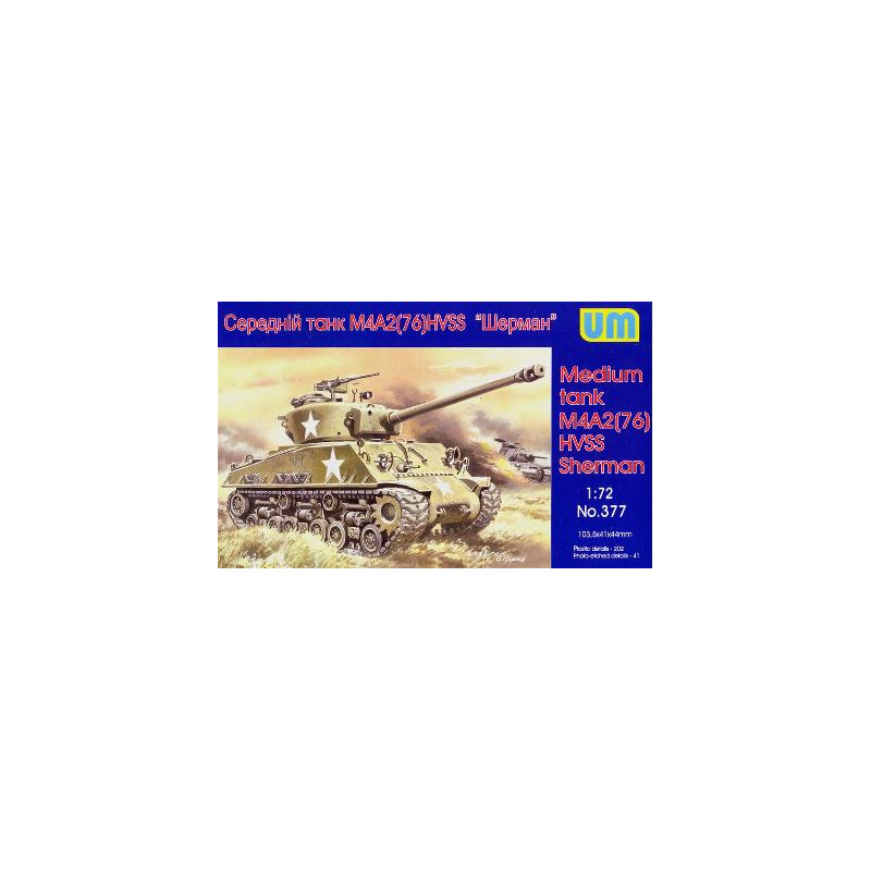 Le M4 Sherman est le char américain produit en plus grande quantité pendant la Seconde Guerre mondiale par les Etats-Unis. Près de cinquante mille exemplaires (toutes versions confondues) furent produits. La maquette militaire Universal Models au 1/72 propose ce modèle, réf: 377