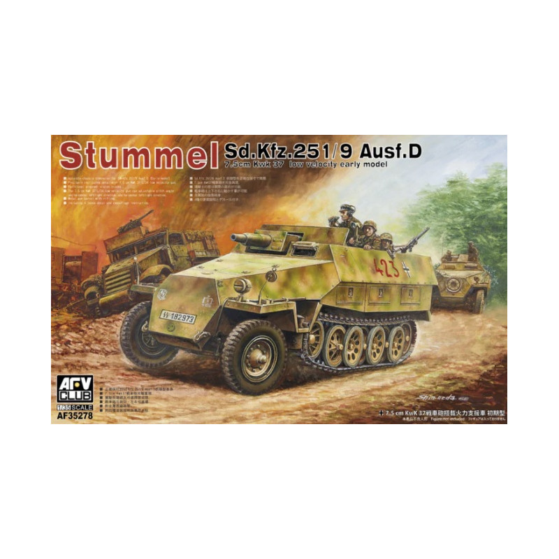 Le Sd.Kfz.251 est un véhicule militaire blindé allemand semi-chenillé de combat, construit et utilisé de 1939 à 1945. La maquette militaire AFV au 1/35 reproduit la version "9" surnommée "Stummel" (mégot) à cause de son tube court, réf : 35278