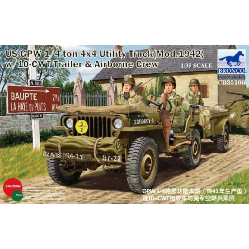L'origine de ce surnom proviendrait de la contraction orale des lettres GP (pour "General Purpose" : Rôle Multiple) qui devient "Jeep". Rapide et pratique, ce véhicule devient effectivement la "voiture à tout faire" de l'Armée américaine. La maquette militaire Bronco au 1/35 propose le modèle de 1942, sa remorque et trois figurines, réf : 35106