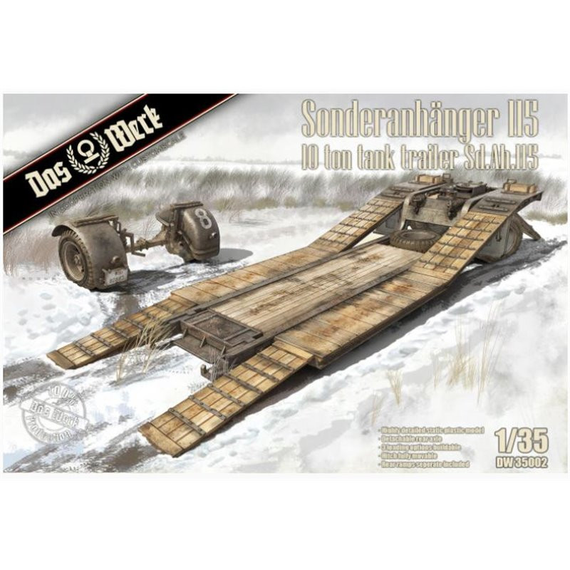 La remorque Sd.Ah 115 a été conçue pour le transport de réservoirs légers. La maquette militaire Das Werk Models au 1/35 propose une reproduction de ce modèle, réf : 35002
